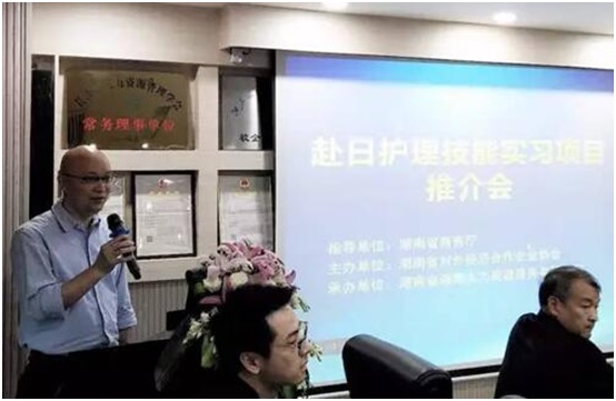 2017年4月25日下午,由湖南省商務廳指導、湖南省對外經(jīng)濟合作協(xié)會主辦、湖南省湘輝人力資源服務有限公司承辦的“赴日護理技能實習項目推介會”在長沙舉行。國家衛(wèi)計委能力建設和繼續(xù)教育中心社會合作部主任王永進、湖南省商務廳對外合作處長彭爭、天心區(qū)副區(qū)長許波、日本醫(yī)療看護合作社理事長栗原幸太郎、湖南發(fā)展集團股份有限公司副總裁兼湖南發(fā)展僑亞養(yǎng)老產(chǎn)業(yè)有限公司董事長張建湘等出席了會議。